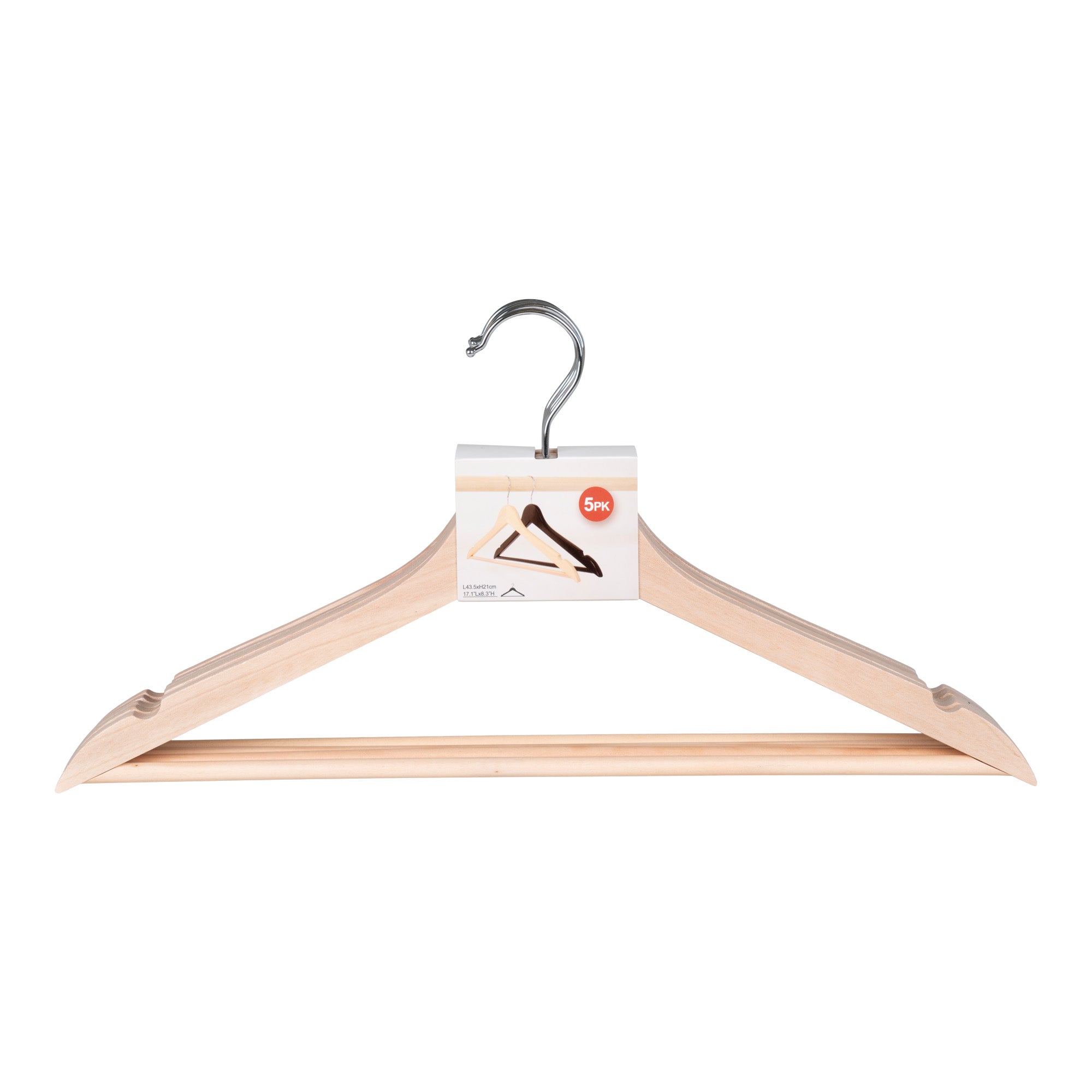 Træ natur bøjler Helt enkle bøjler i modellen Dussa fra House Nordic. Kan både bruges i tøjskabet, garderoben og entréen. Lavet i den moderne og stilrene nordiske stil. Antal: 5 stk Materiale: Gummitræ Mål: L5.5 x B43 x H21.5 cm Vægt: 0.4 kg