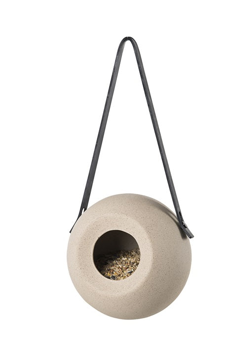 Klassisk fuglefoderhus til især små fugle Dette keramiske fuglefoderhus er håndlavet med ophæng i sort gummi. Du kan fylde forhuset med frø og glæde dig over dine besøgende fugle. Farve: Hvid Mål: Ø15 cm Se flere fuglefoderhuse.