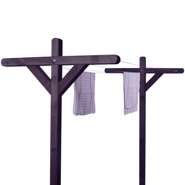 Tørrestativ fra HORTUS med 20 meter wire Fremstillet i sort grundmalet 70×70 mm fyrretræ incl. 20 meter plastbelagt wire. Stolperne er 270 cm og derfor beregnet til nedgravning/nedstøbning. Inkl. udførlig samlevejledning. 2 stk. stolper 70 x 70 x 2700 mm