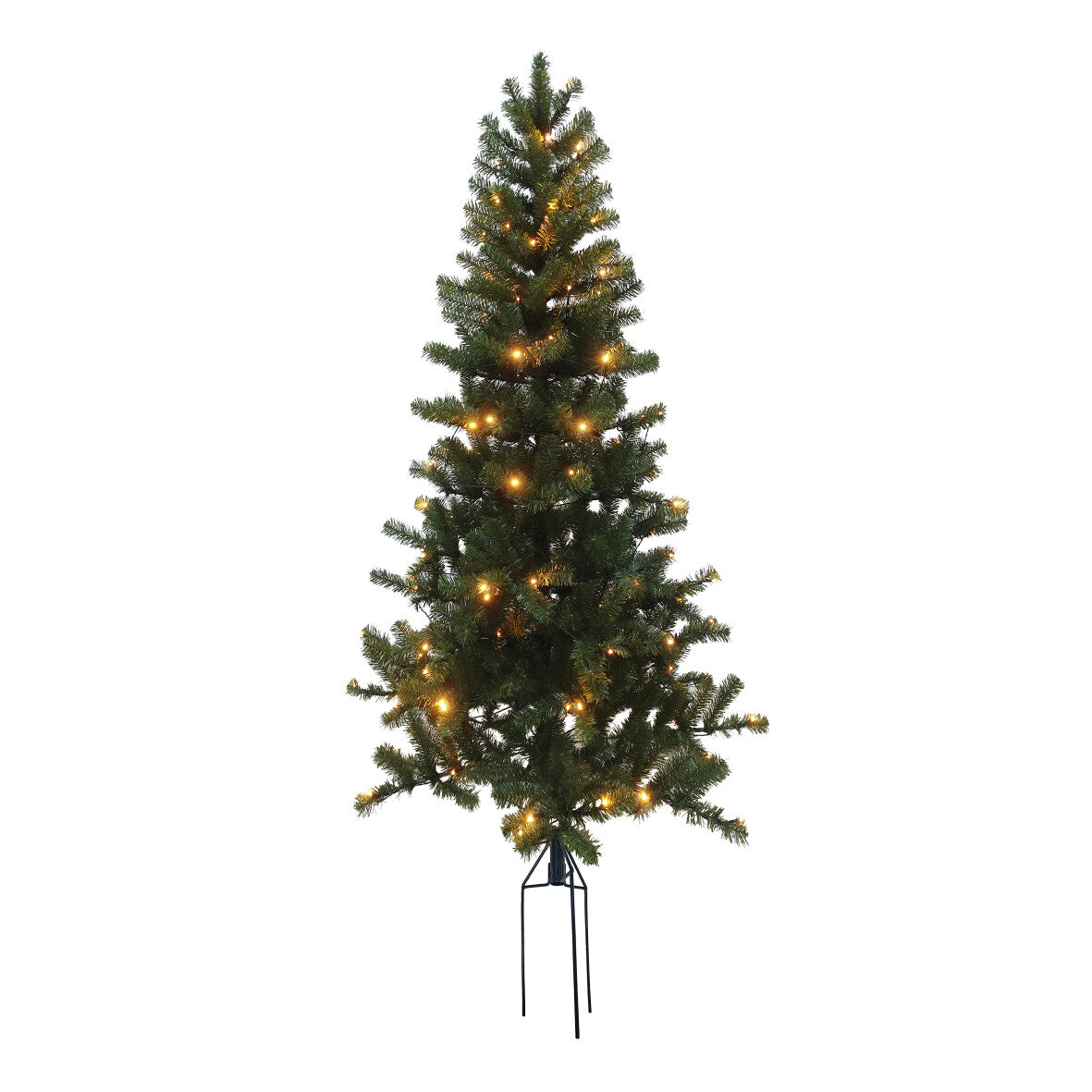 Et smukt og naturtro juletræ i plastik! Til udendørs brug med 110 LED lys påmonteret. Hav glæde af dit flotte juletræ i hele juleperioden. Træet leveres med metalfod og er sammenklappet. Nemt og hurtigt at sætte op og pakke ned efter jul. Kan anvendes båd